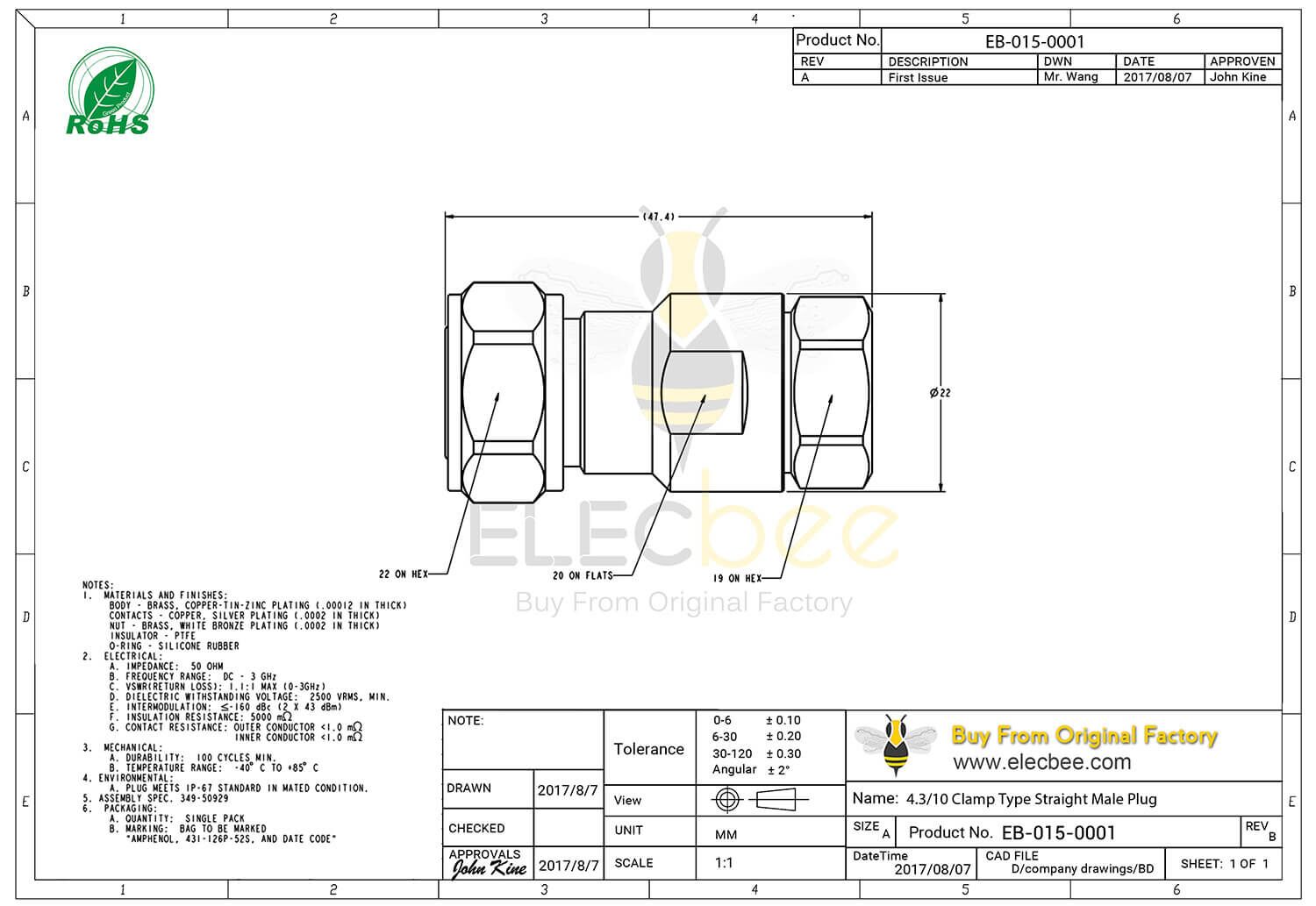 - 电压驻波比DC to 4 GHz 0.015 max. (RL ≥ 36 dB)