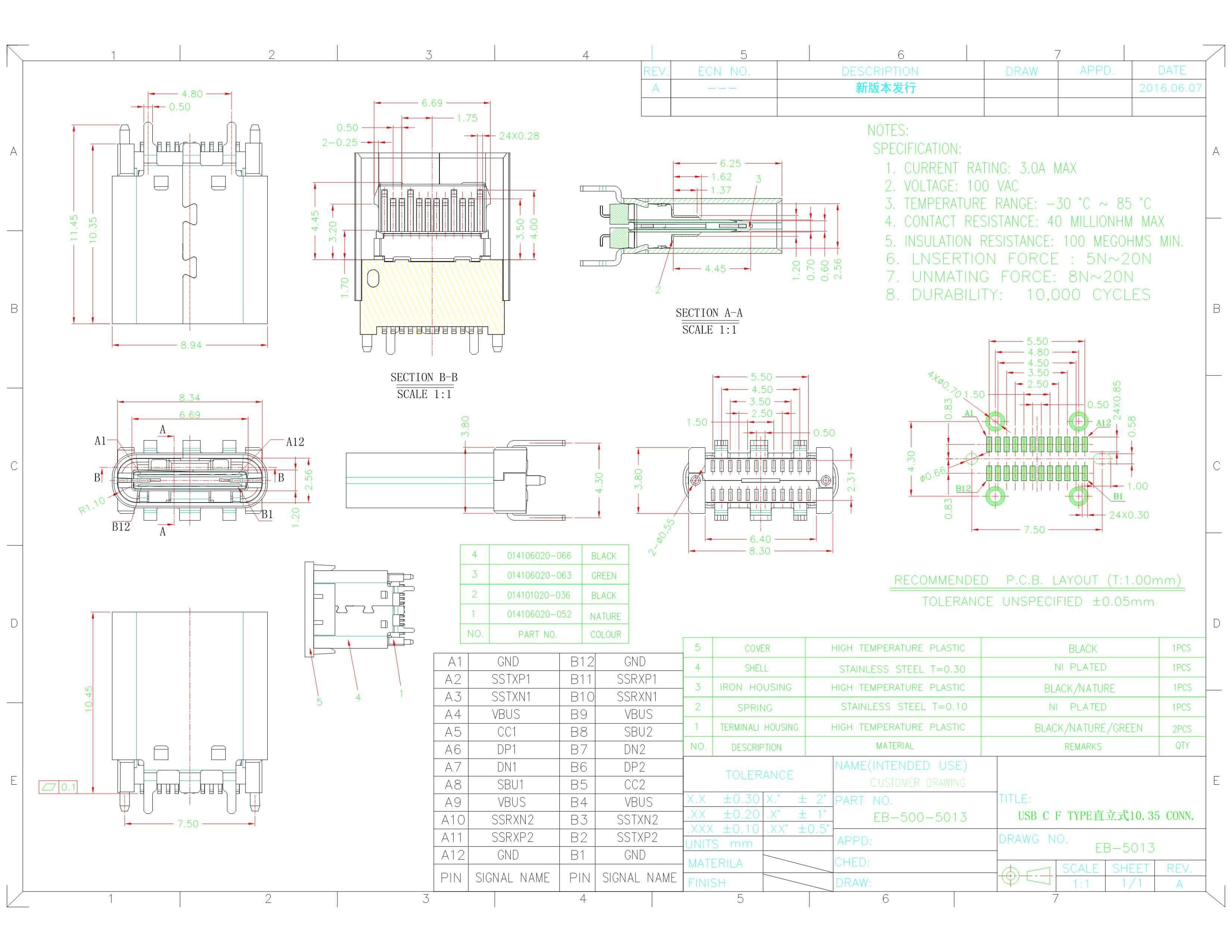 - USB3.0,Type C,母头,直式,直立式,SMT,接PCB板