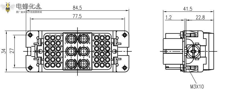 导线规格:0.14~2.5mm²AWG26-14