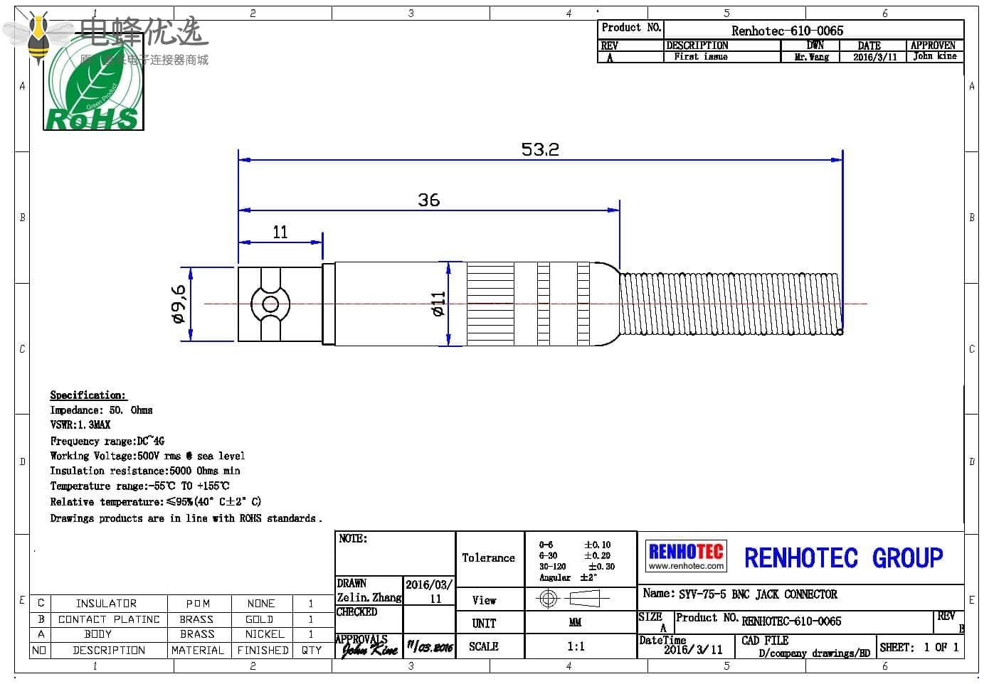 - 电压驻波比:直式 ≦ 1.22/3GHz / 弯式 ≦ 1.30/3GHz