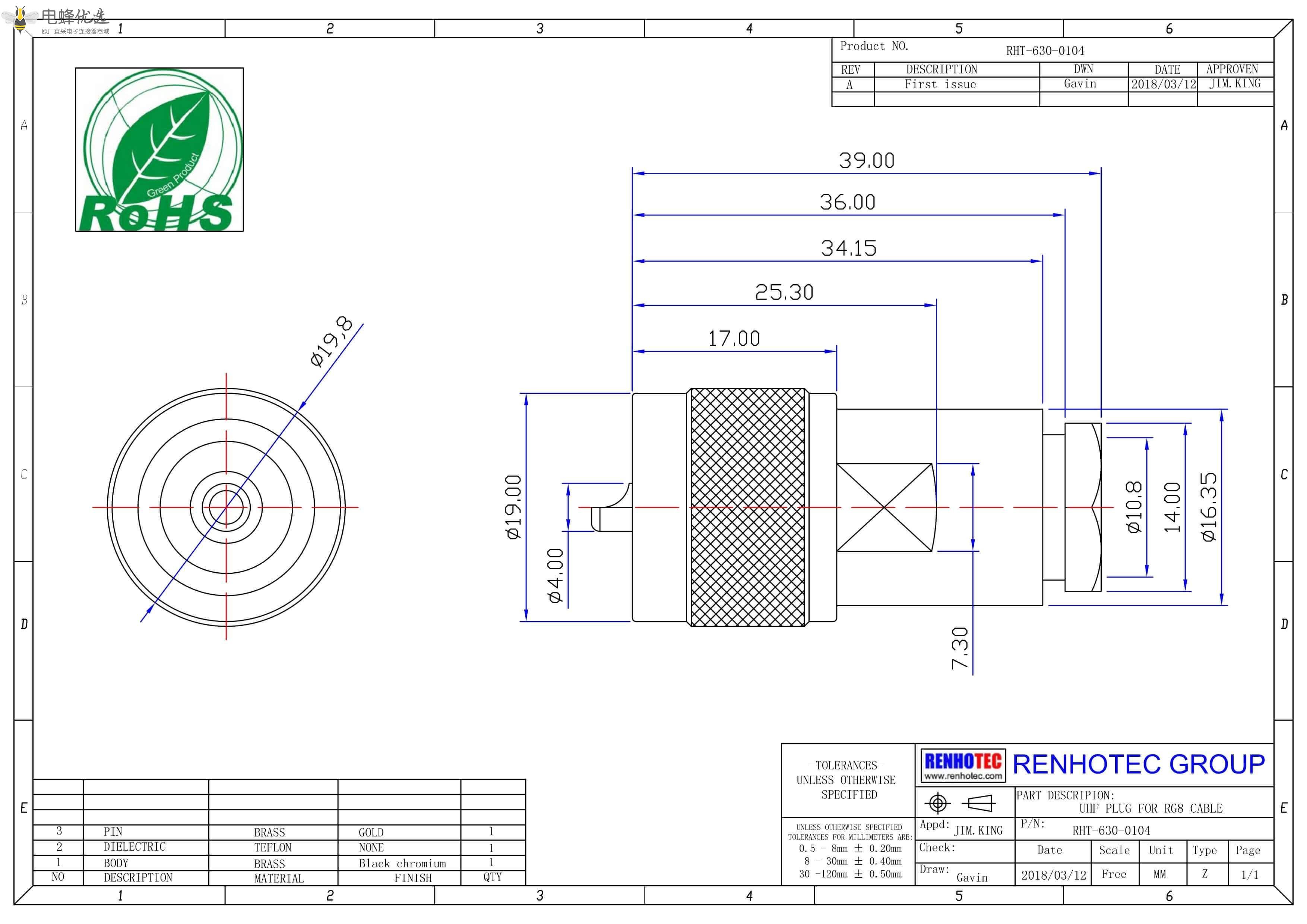 TFE insulators: -65°C ~ +165°C - 耐环境性:除非特殊标注,所有UHF系列连接器均不具有耐环境性能。