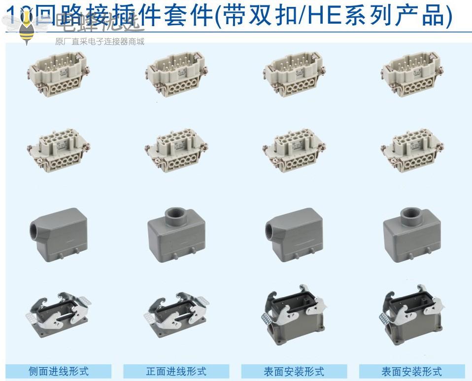 10芯重载连接器厂家批发矩形热流道航空插头冷压连接