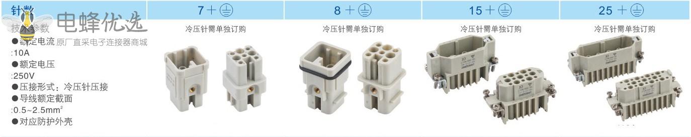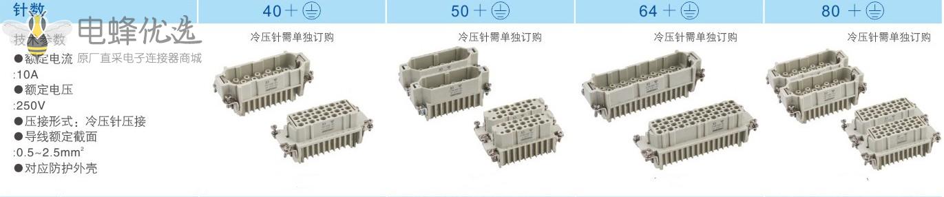接线形式:螺钉压接、弹片压接、冷压针压接