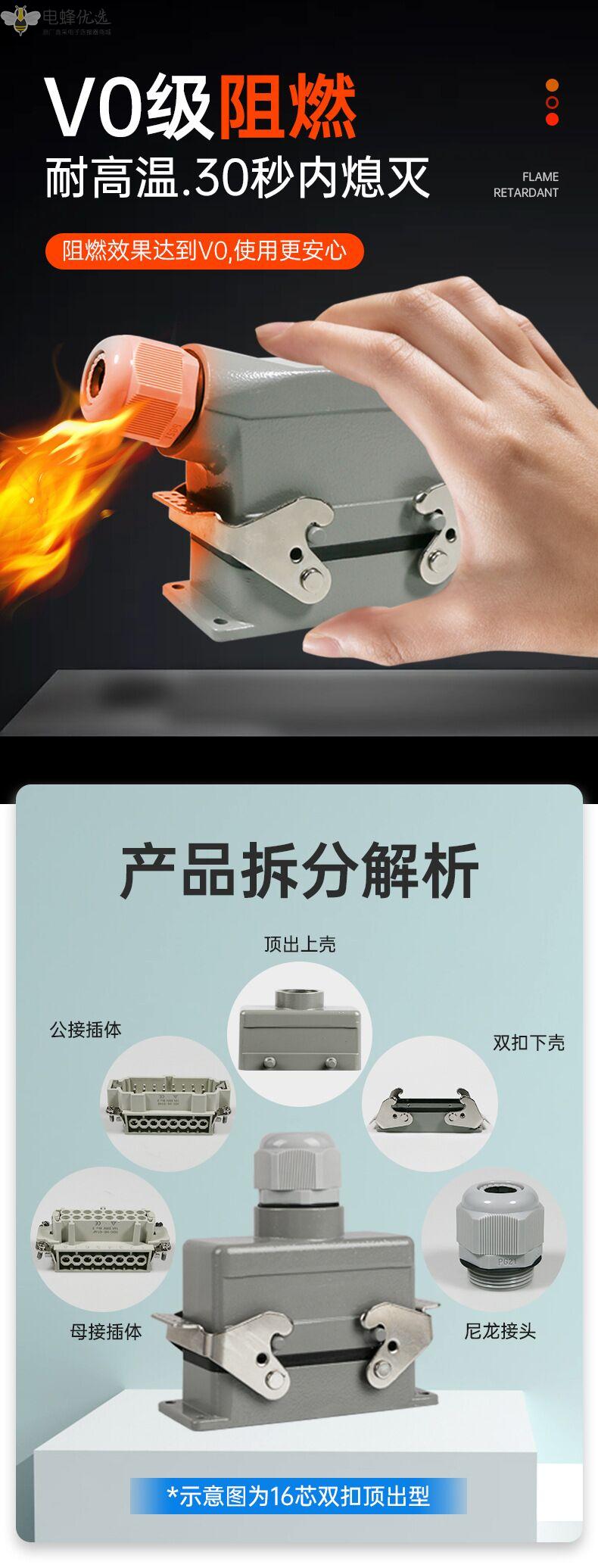 46芯防水重载连接器HEE厂家直销表面安装V0级阻燃镀银防水工业连接器