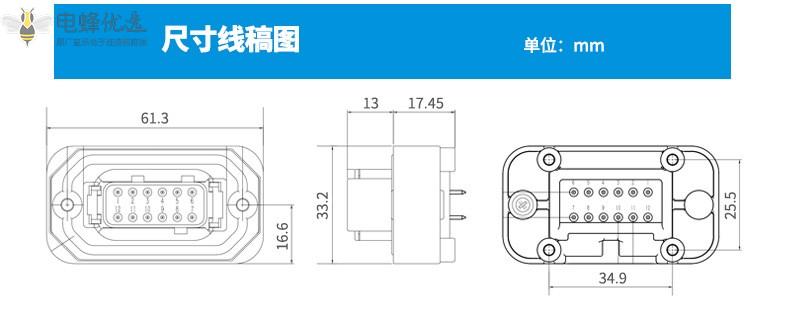 12孔汽车连接器直针PCB防水接插件