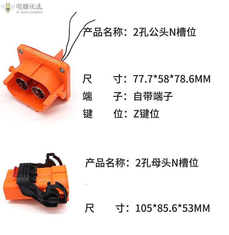 2芯2孔新能源电动汽车高压连接器N槽位防水插头