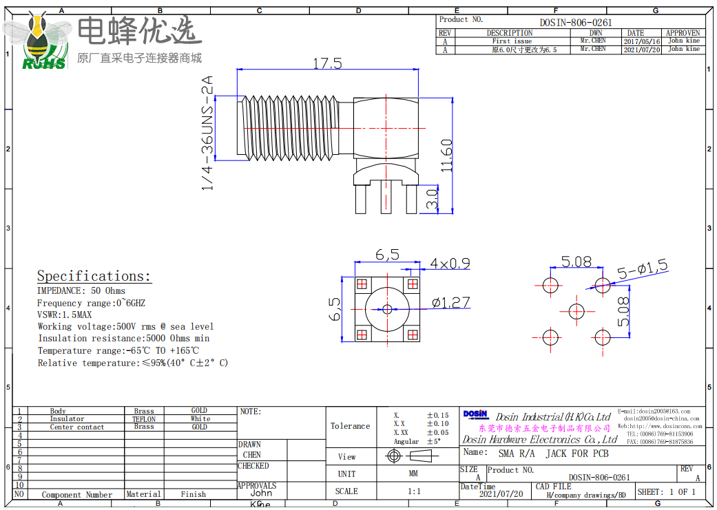 - SMA连接器,弯头,母头,插板,PCB板,镀金;