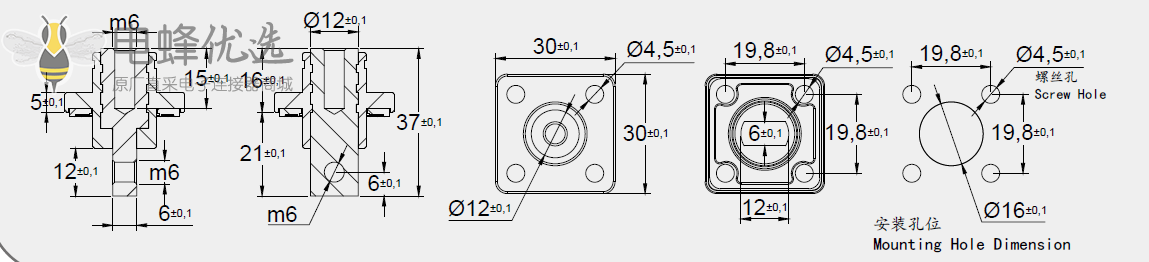开孔尺寸:φ16--q4*4 (19.8*19.8mm)