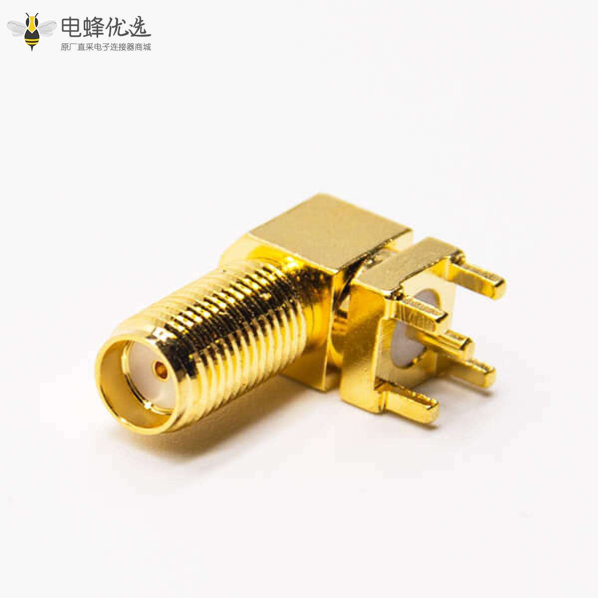 - SMA连接器,弯式,母头,穿孔,PCB板,镀金;