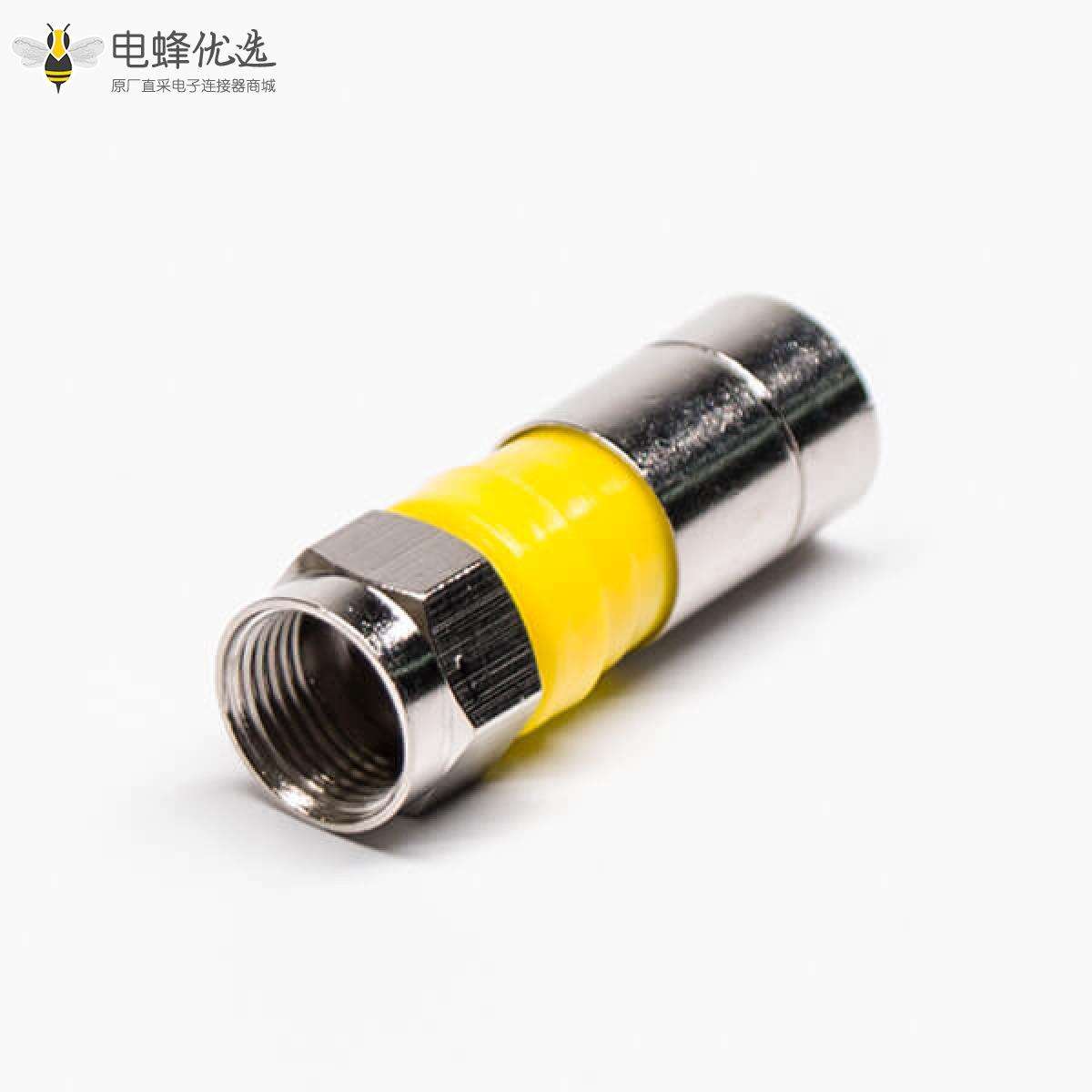 - F型连接器,公头,直式,180度,同轴连接器,压缩式,黄色,RG6线,防水;