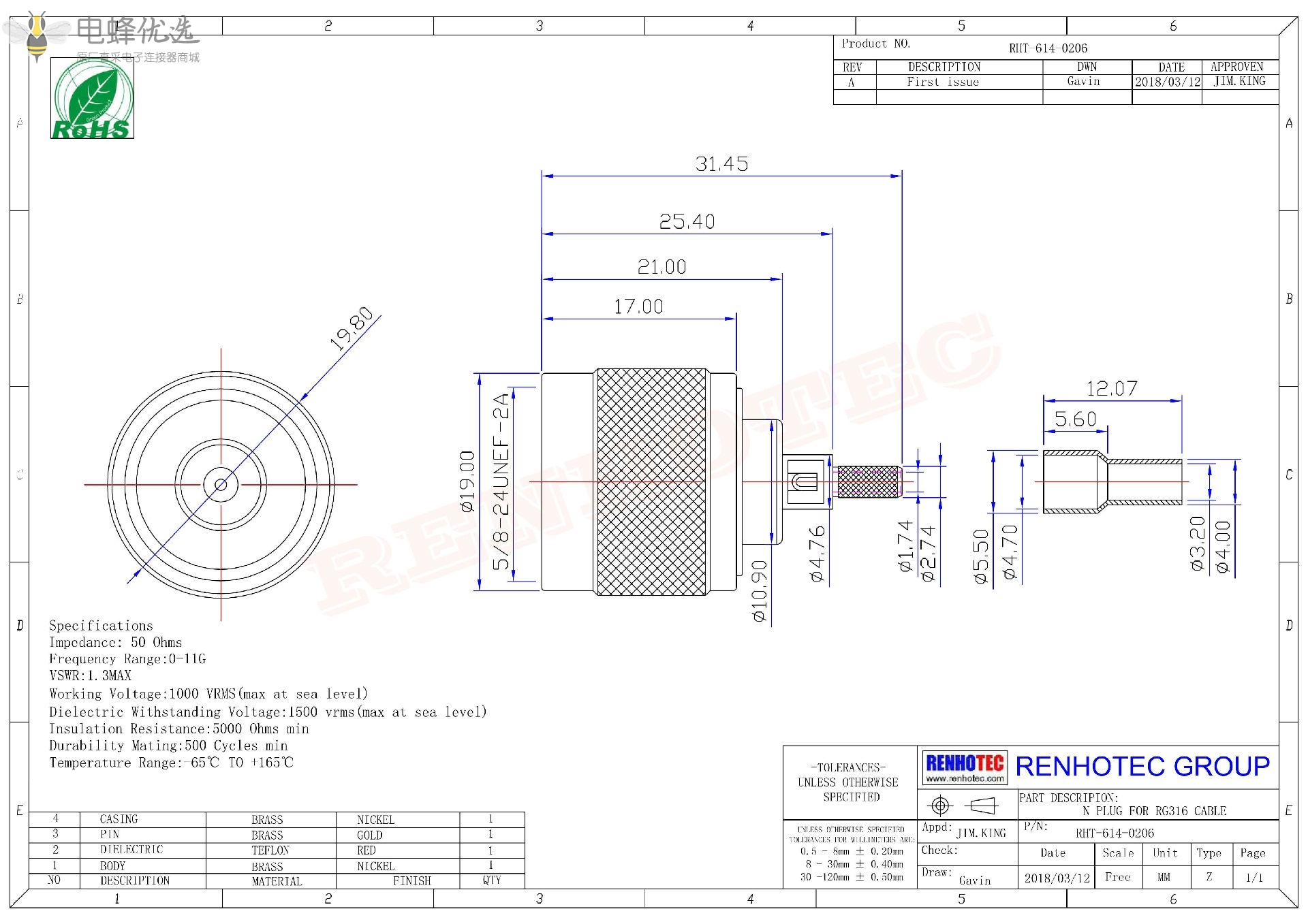 - 阻抗:50 ohm
