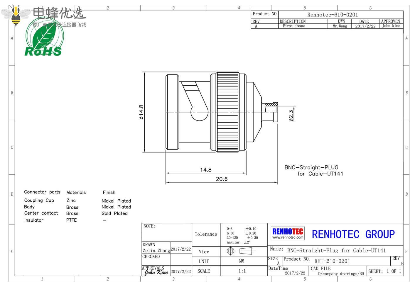 - 连接线,直式,公头,锌合金,50欧姆,RF射频同轴,BNC连接器,电缆,焊接;