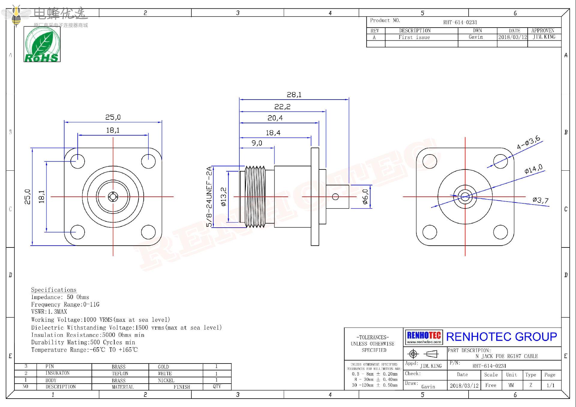 - 阻抗:50 ohm