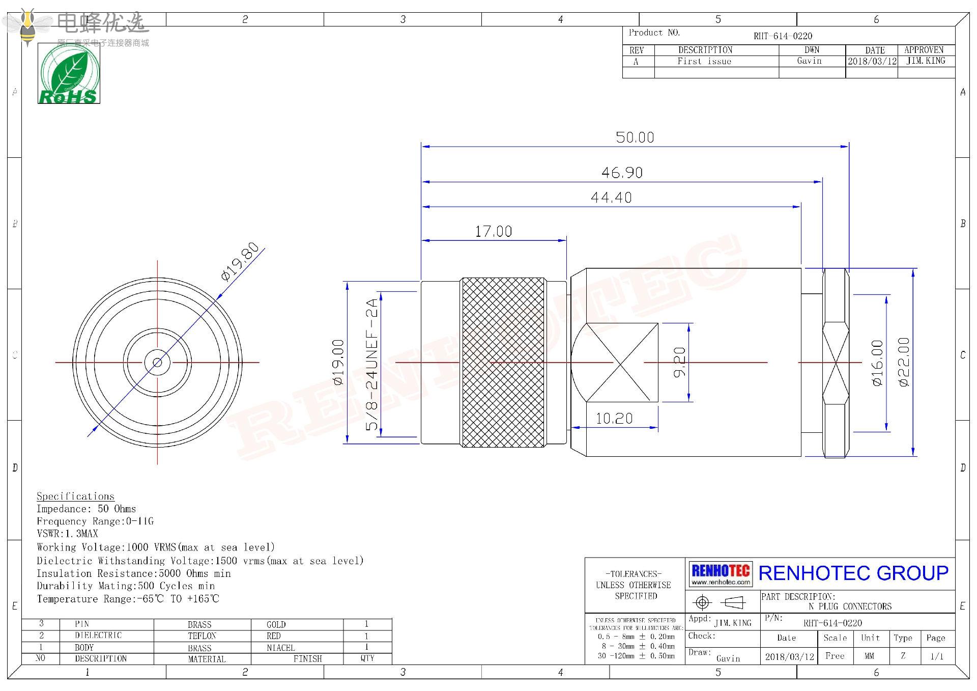 - 阻抗:50 ohm