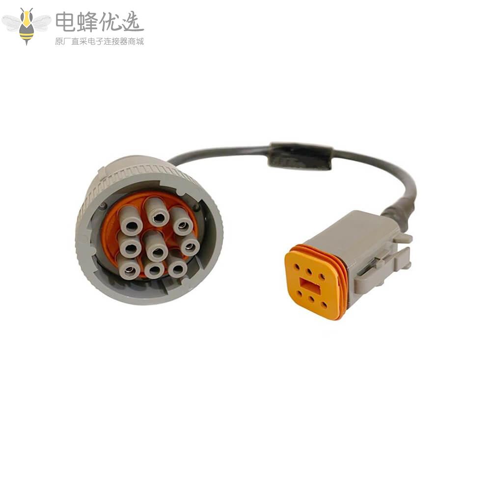 用于卡特彼勒发动机的适配器电缆,用于发动机网关的游艇设备电缆,DT06-6S 母头转 J1939 9 针公头适配器电缆
