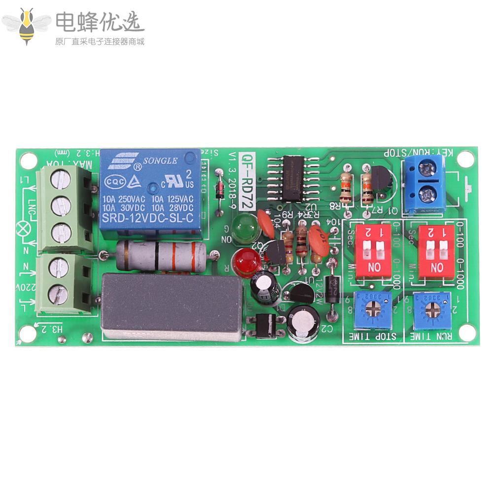功能:具有启停功能,模块启动后进入死循环模式,继电器按设定时间通断。