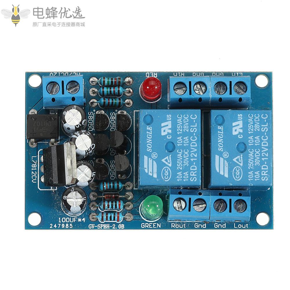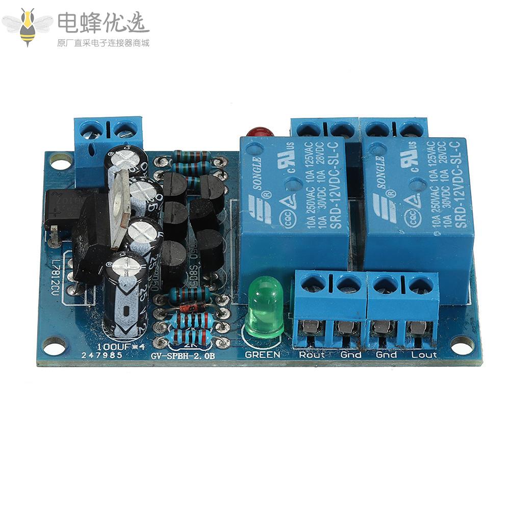 喇叭保护板有开机延时(约3秒)和直流保护(约1V控制电压)。