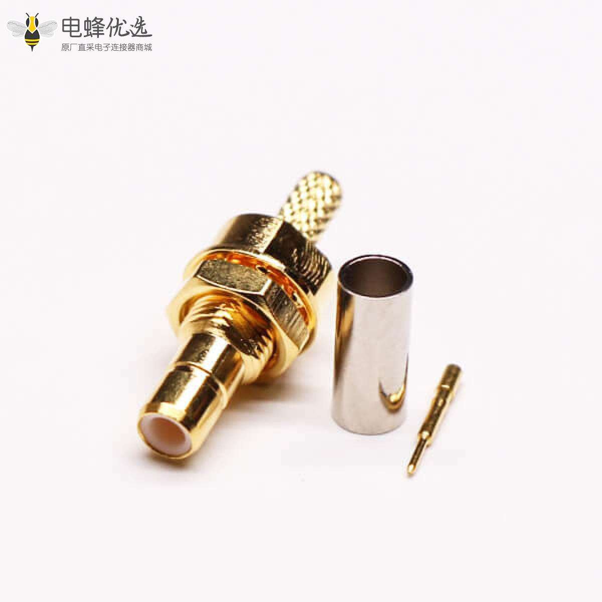 - SMB连接器,RF射频同轴,直式,公头,穿墙,压接,同轴线缆 ;