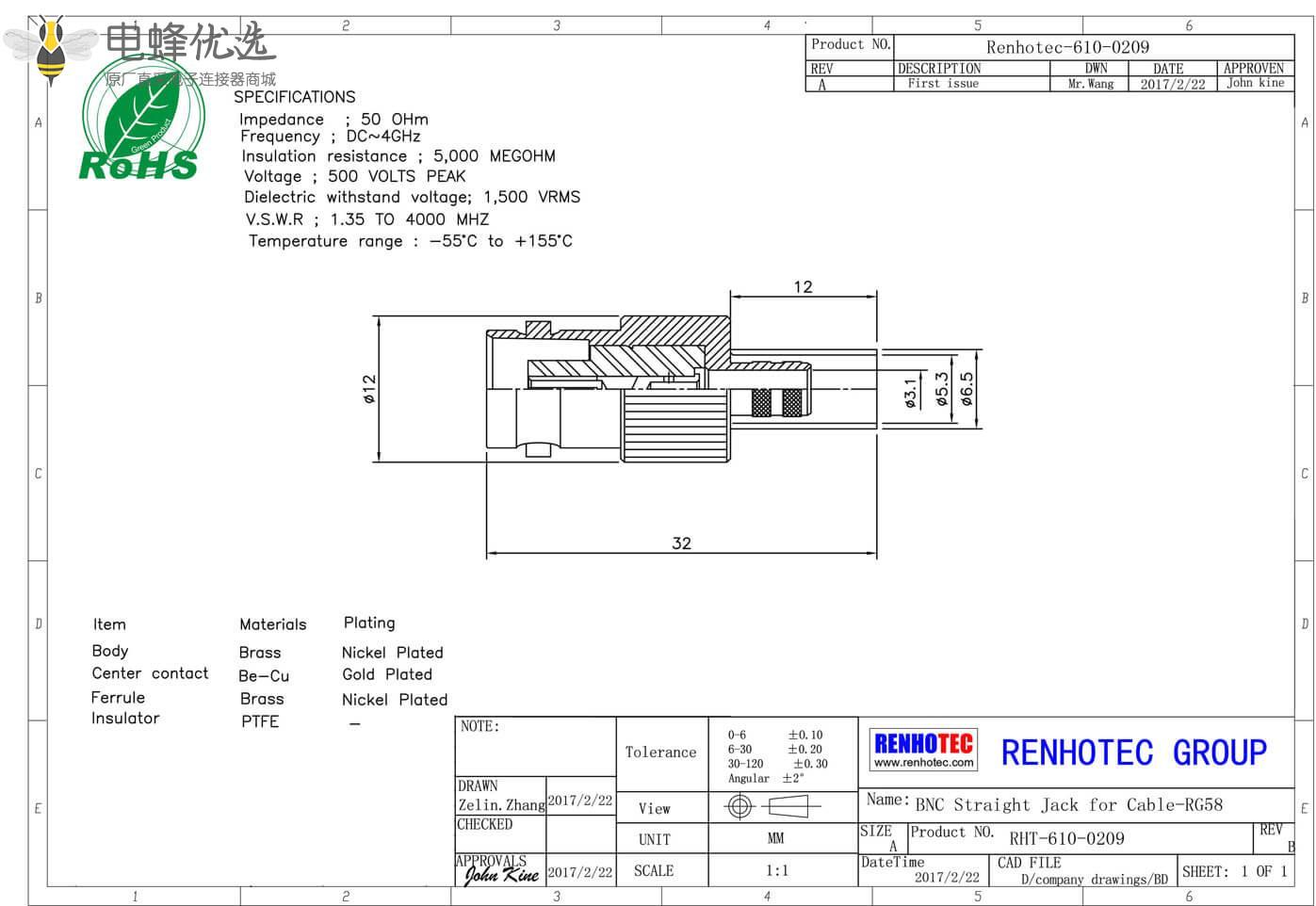 - 阻抗: 50 ohm