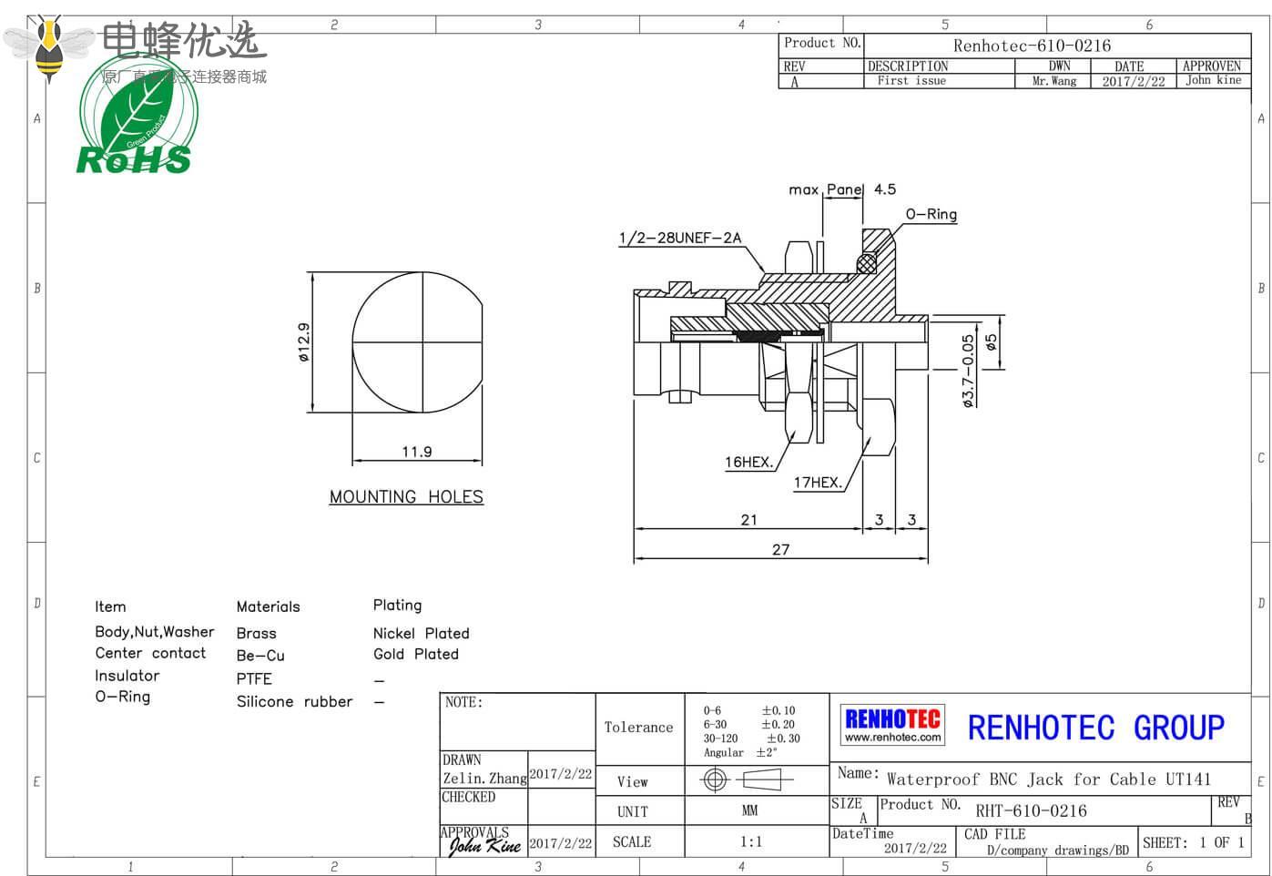 描述:产品特征:连接线,直式,母头,锌合金,50欧姆,RF射频同轴,BNC连接器,电缆,穿墙紧凑设计,安装所需空间更少;快速插拔,安装简单方便;高质量原厂出货,30天无忧退换货;来自品牌OEM原厂批发,相同质量,更实惠的价格。BNC连接器的主要应用:天线、线材电缆、汽车、收音机、视频、广播、电信、卫星通信