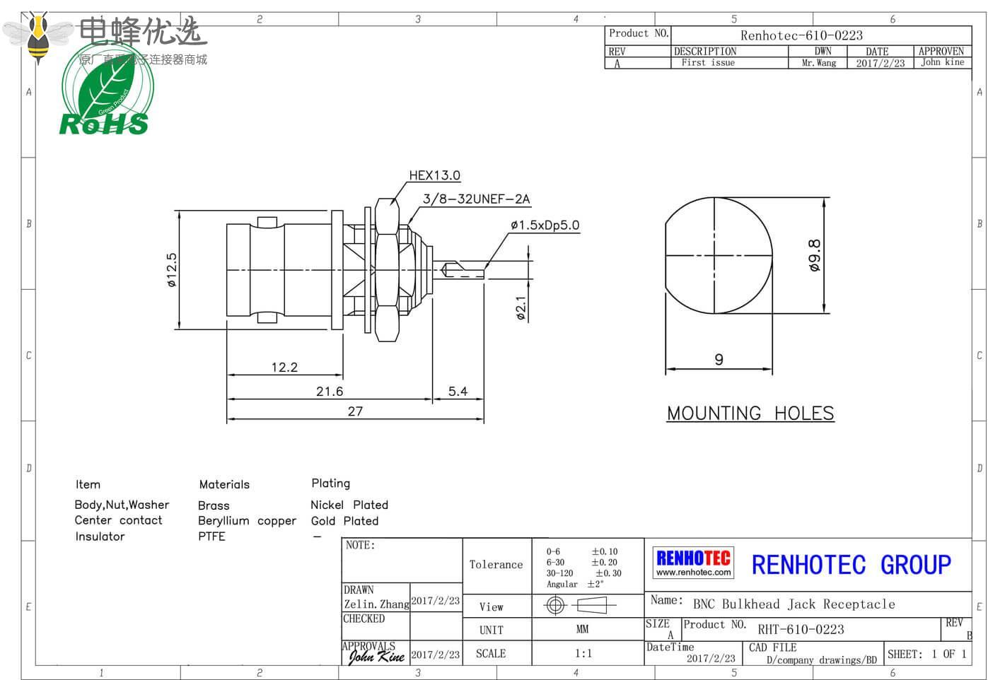 | 中心针 | Beryllium copper | Gold Plated | |