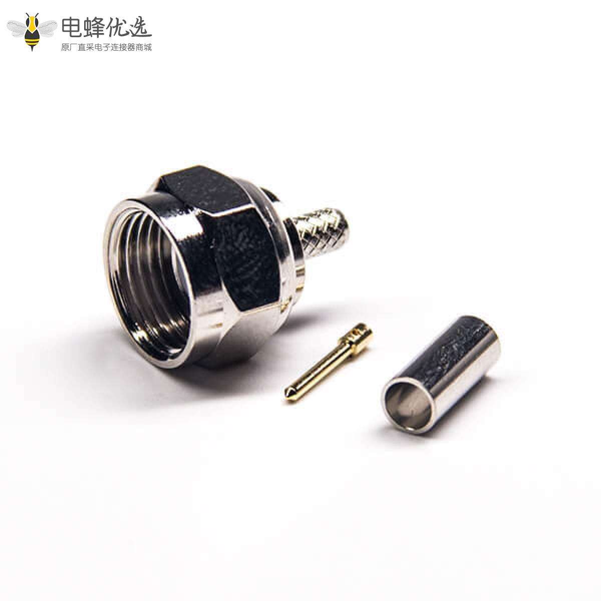 - f型连接器,直式,公头,公针,180度,镀镍,接线,压接式;