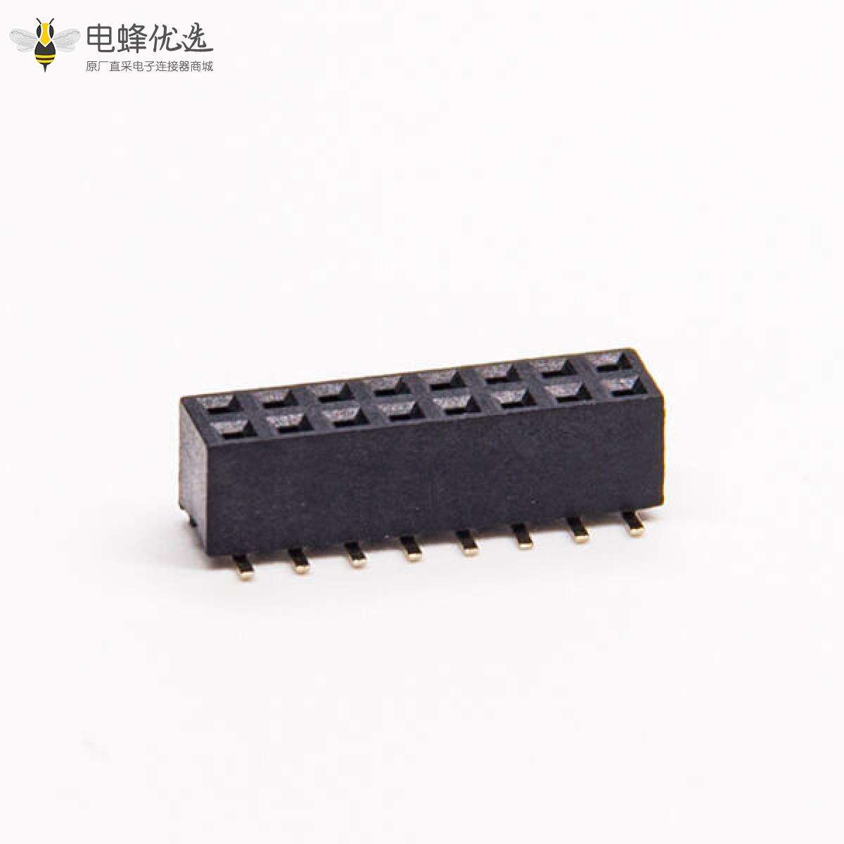 - 排母连接器,母头,直式,180度,16PIN,贴板,双排,间距2.0mm;