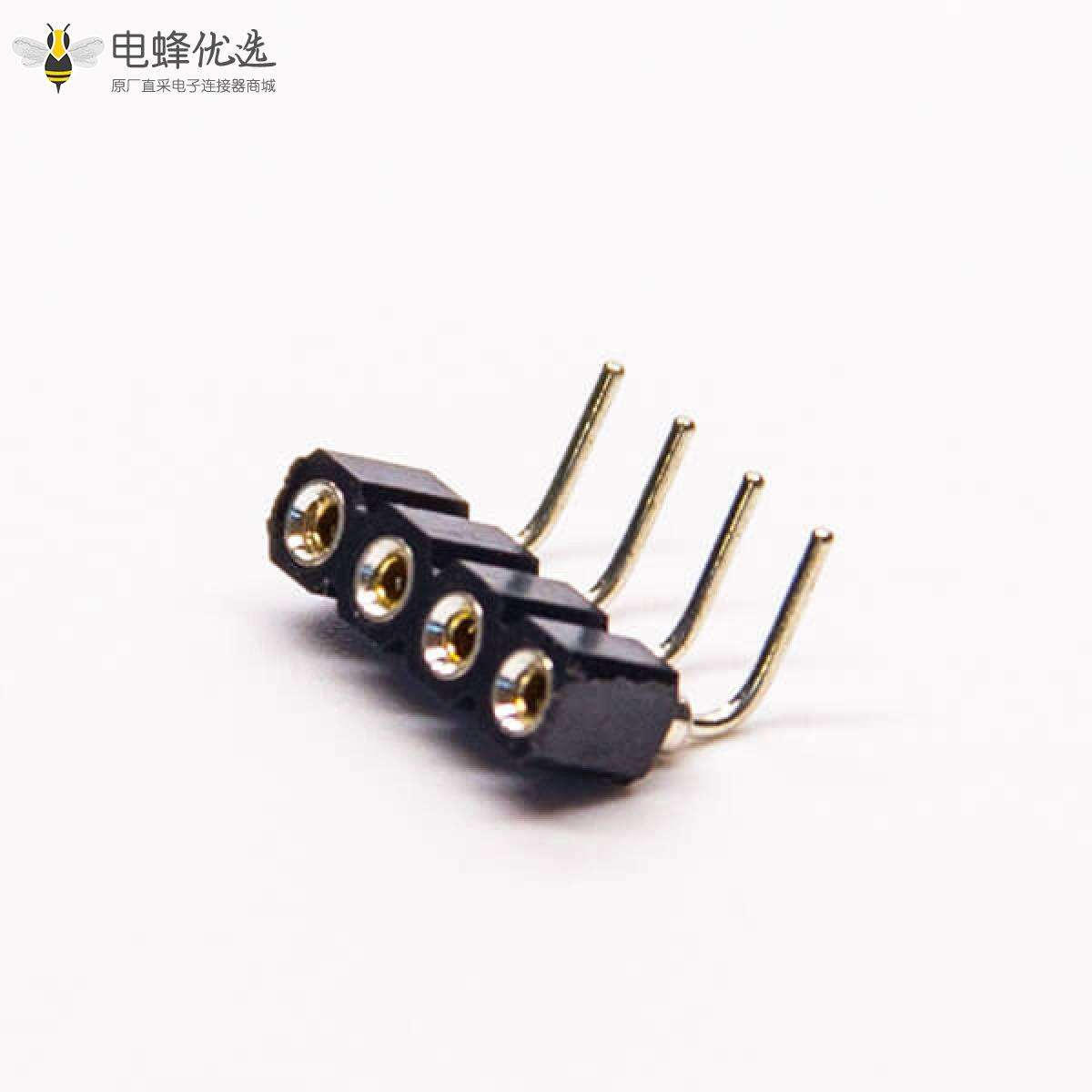 - 排针连接器,母头,圆孔,弯式,90度,4pin,单排, DIP,间距2.54mm;