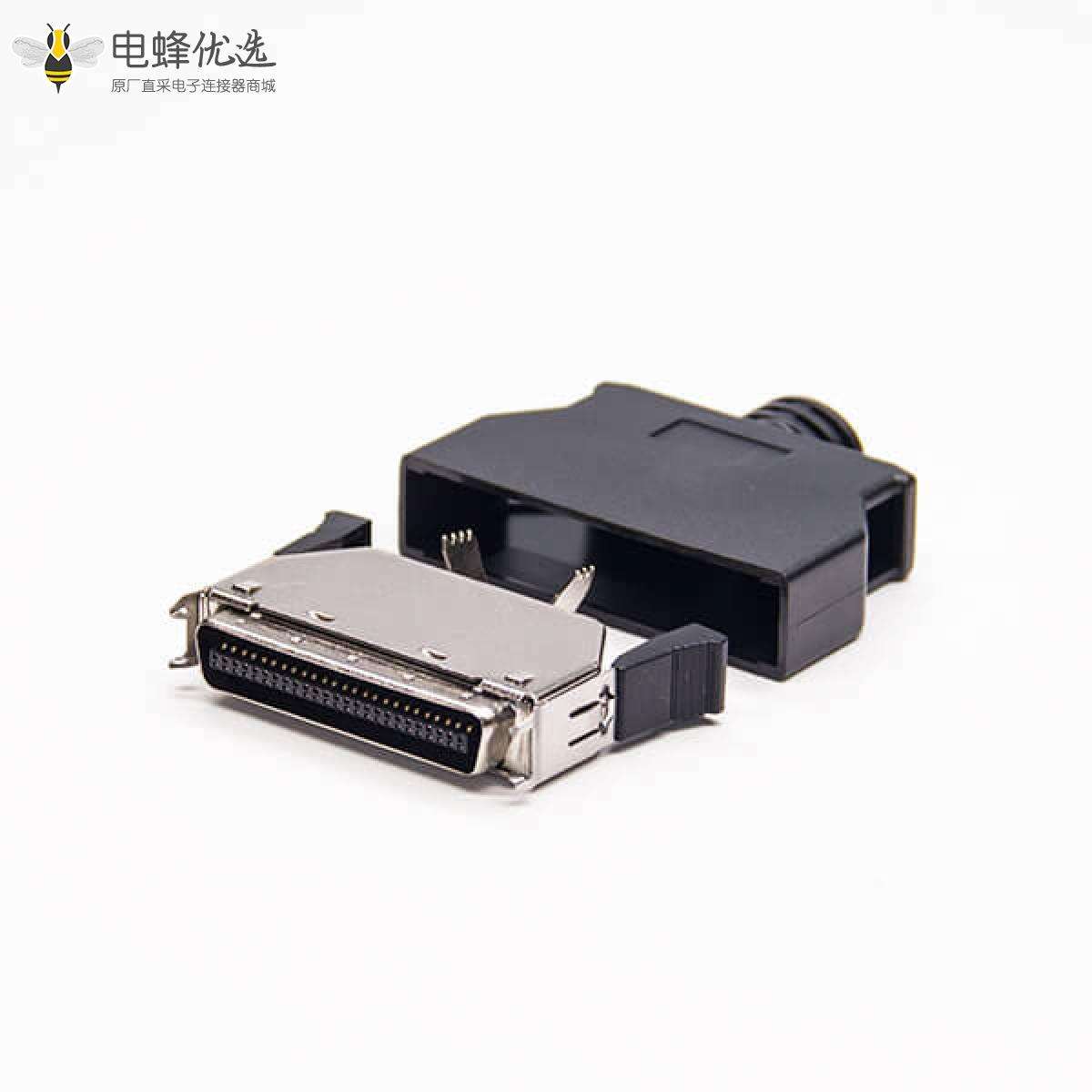 - SCSI 连接器,直式,公头50Pin,黑色塑料外壳,焊接,接线,按键式;
