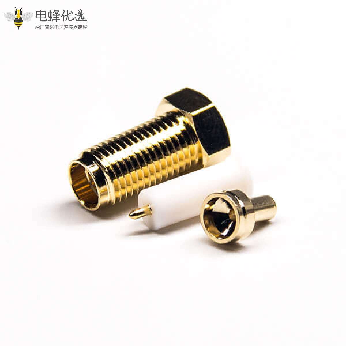 - SMA连接器,直式,180度,母头,反极,镀金,压接,焊接,同轴线缆,接1.37/1.13/0.81线;