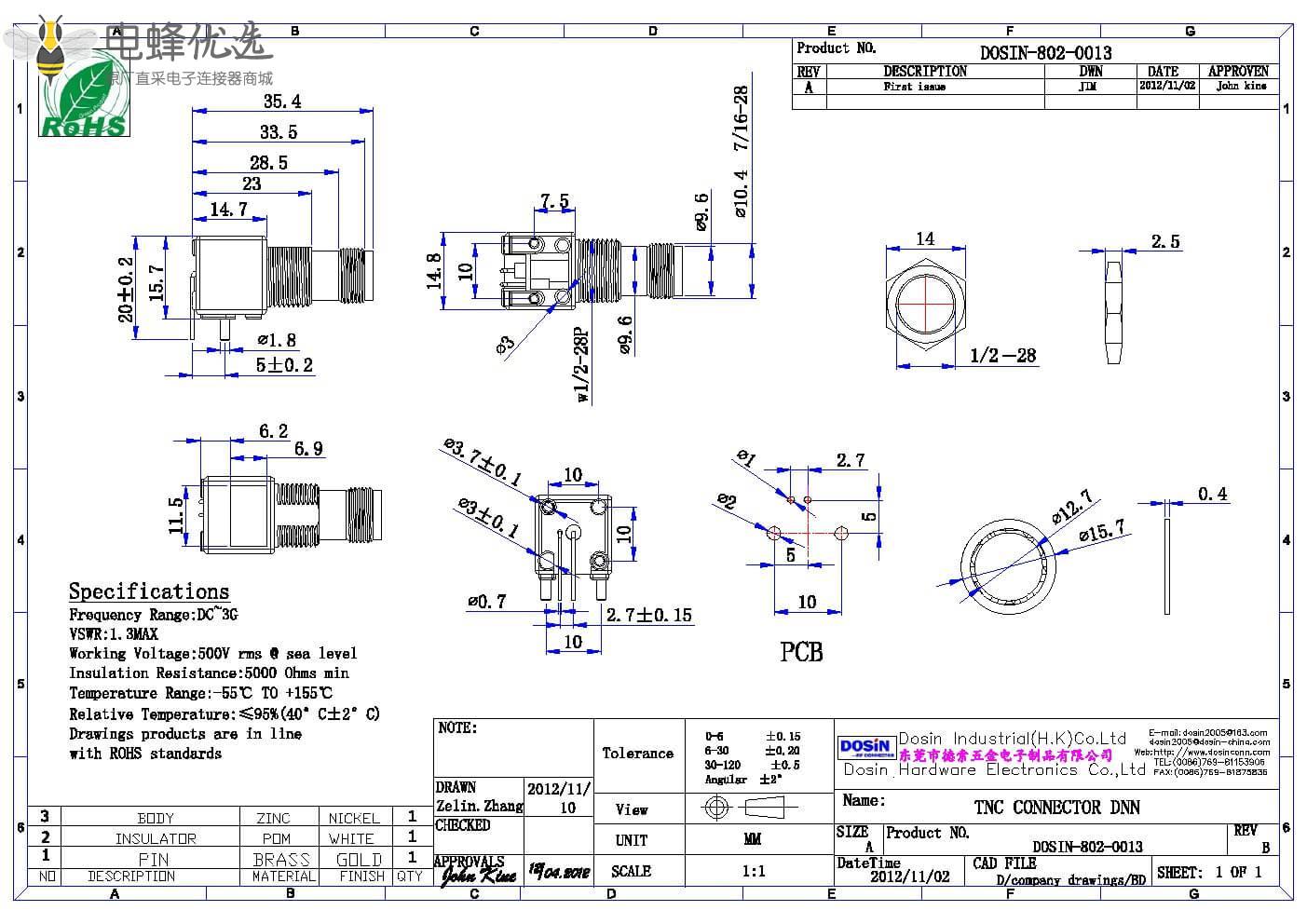 - 高质量原厂出货,30天无忧退换货,产品依照 MIL-C-39012国际标准生产;
