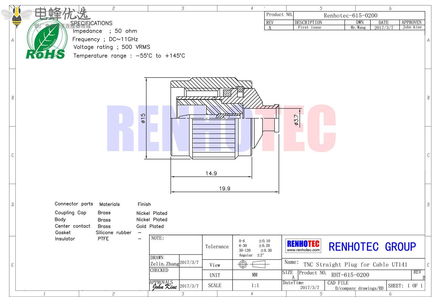 - tnc型射頻連接器 直式焊接公頭 接線UT141;