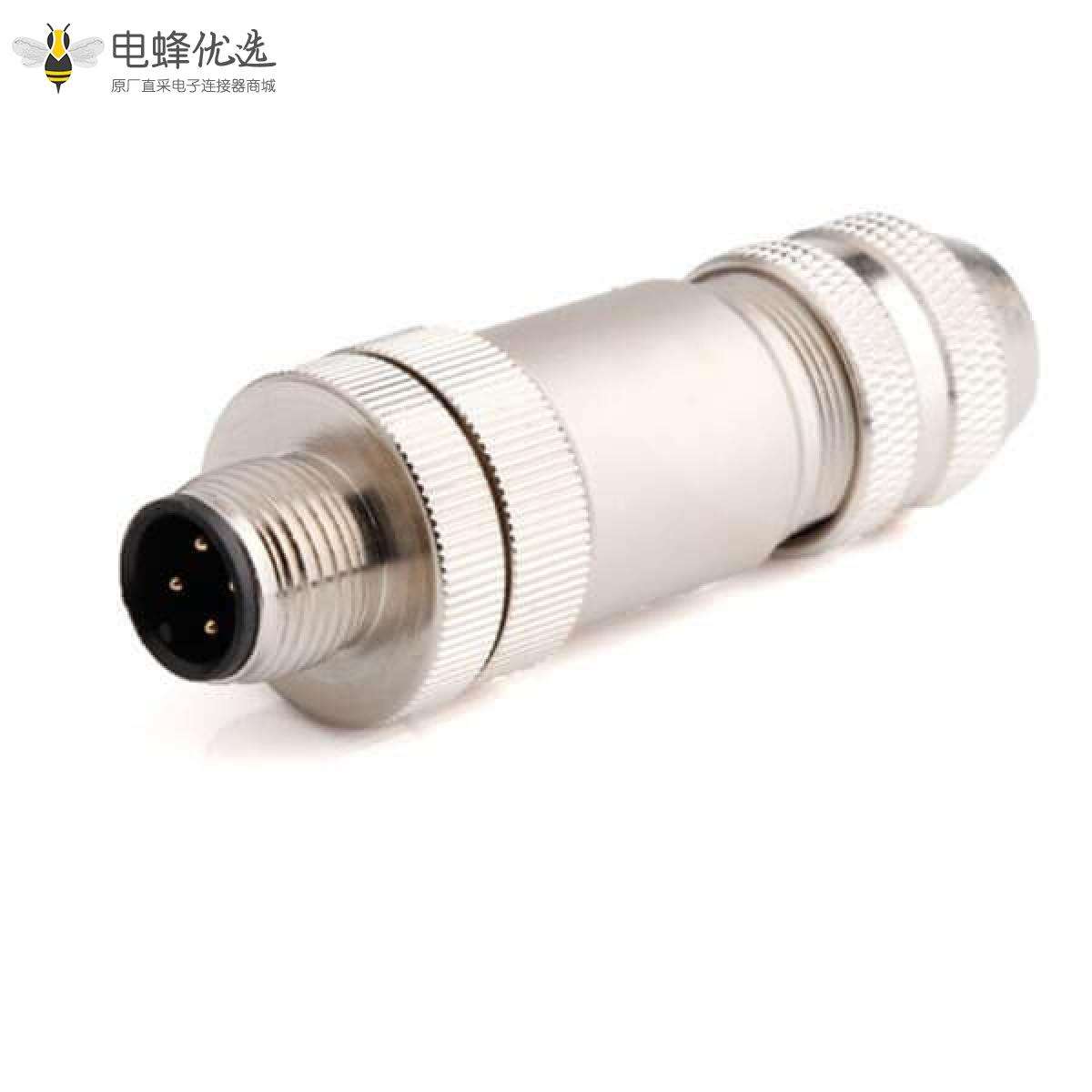 M12,A 编码,现场组装式,4芯,公,直的,螺丝锁线,带屏蔽;