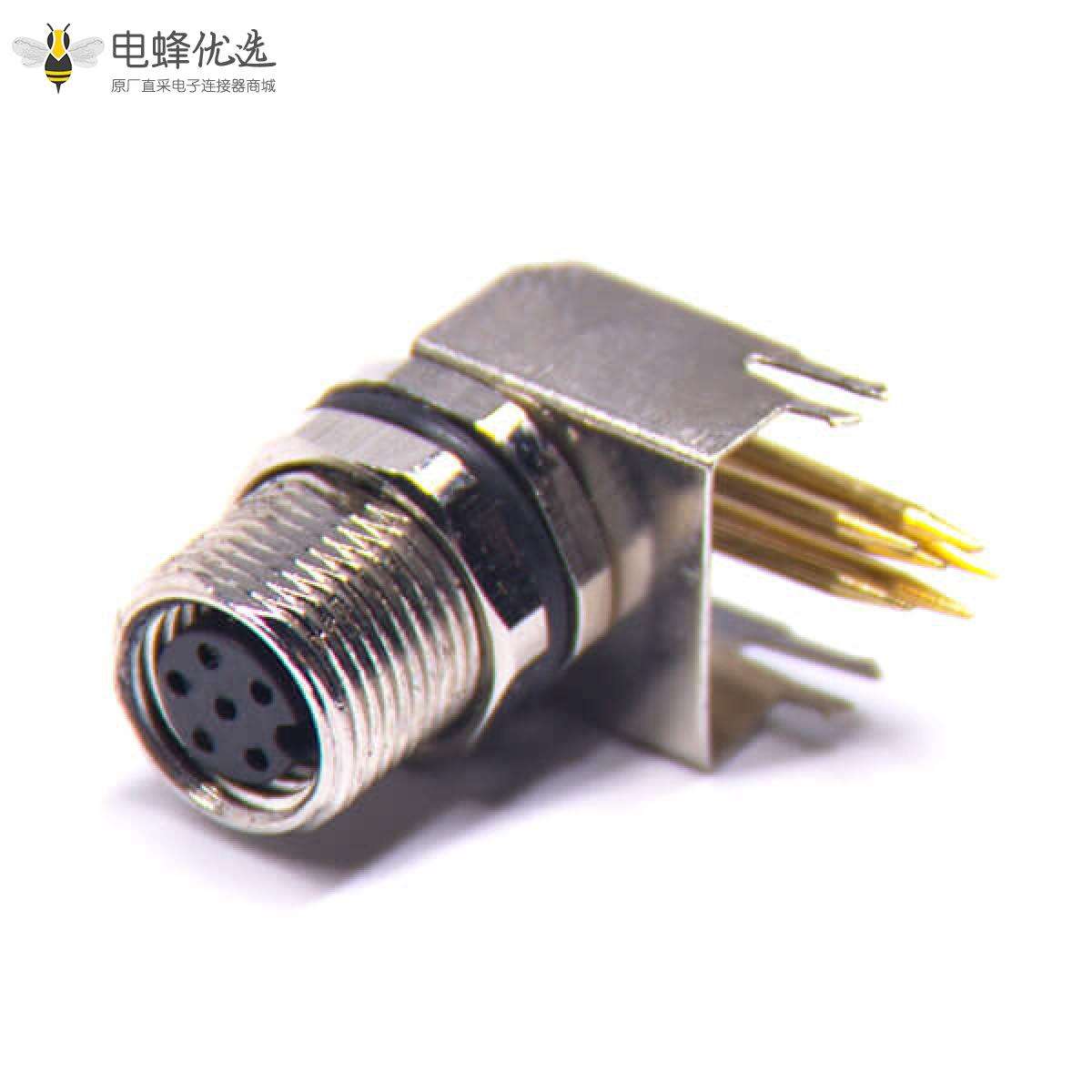 M8,6芯,A编码,板端插座,母,前锁板,弯的,插板,不带屏蔽 ;