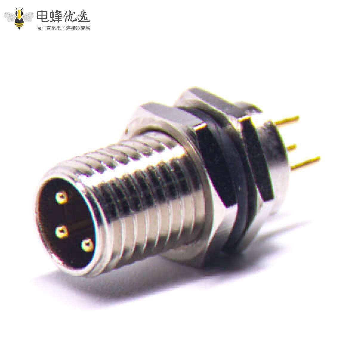 M8,3芯,A编码,板端插座,公,前锁板,直的,插板,不带屏蔽 ;