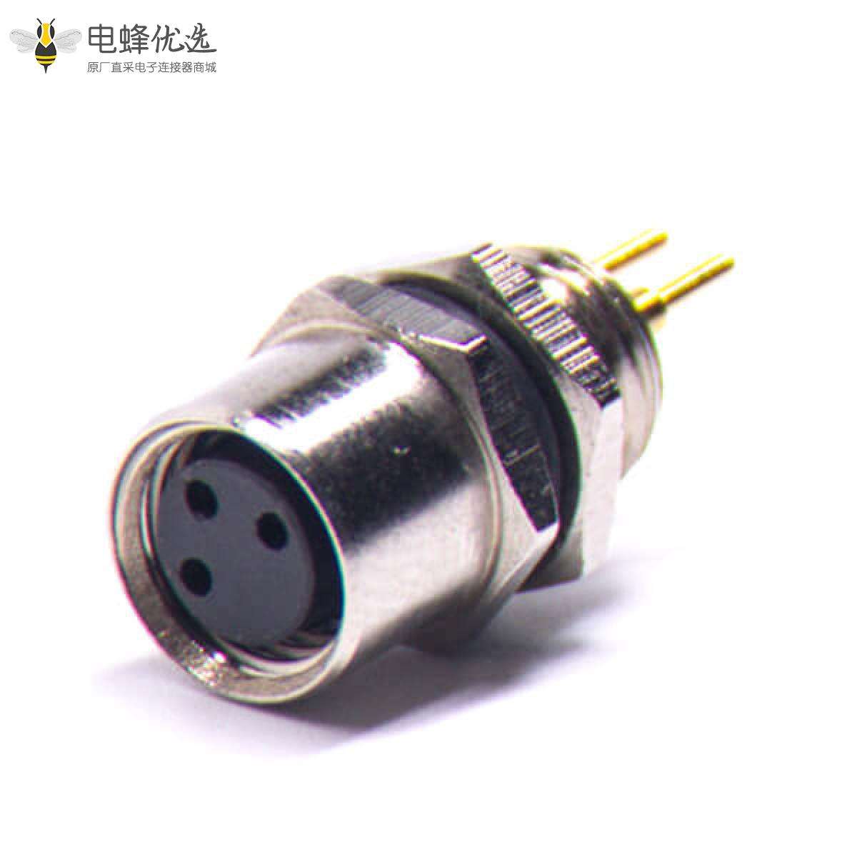 M8,3芯,A编码,板端插座,母,后锁板,直的,插板,不带屏蔽 ;