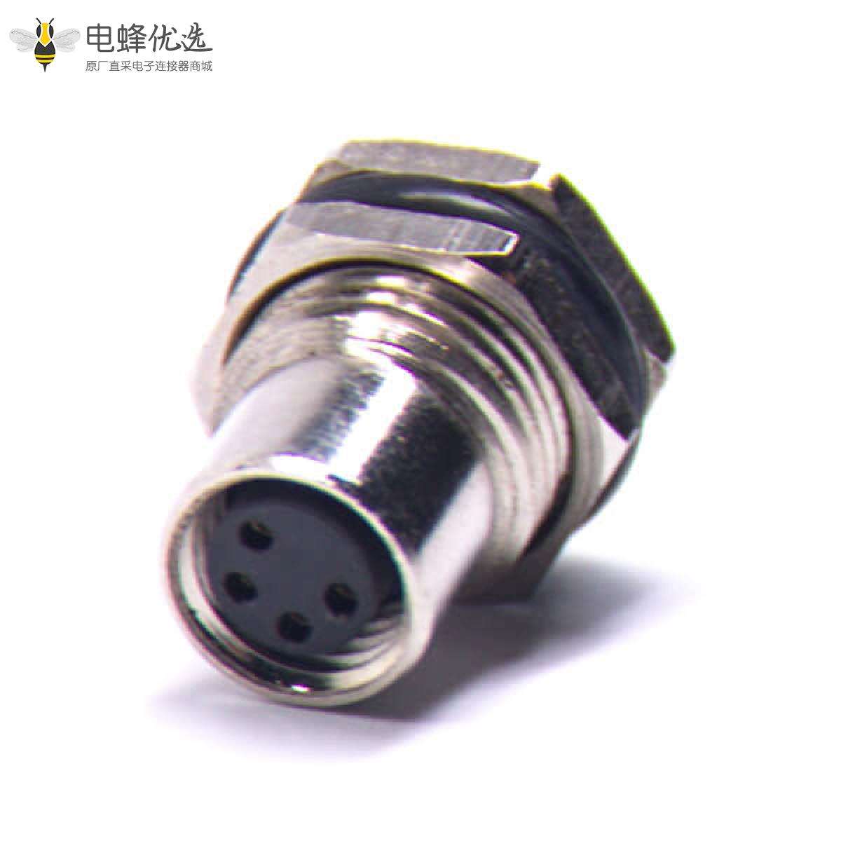 M8,4芯,A编码,板端插座,母,前锁板,直的,焊线,不带屏蔽 ;
