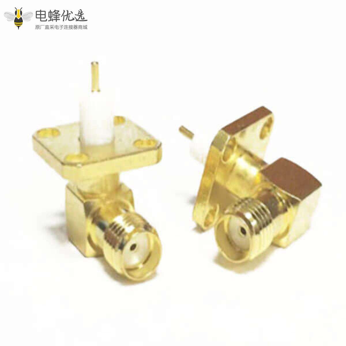 SMA连接器,母,弯式,50ohm,4孔法兰,镀金,铜;