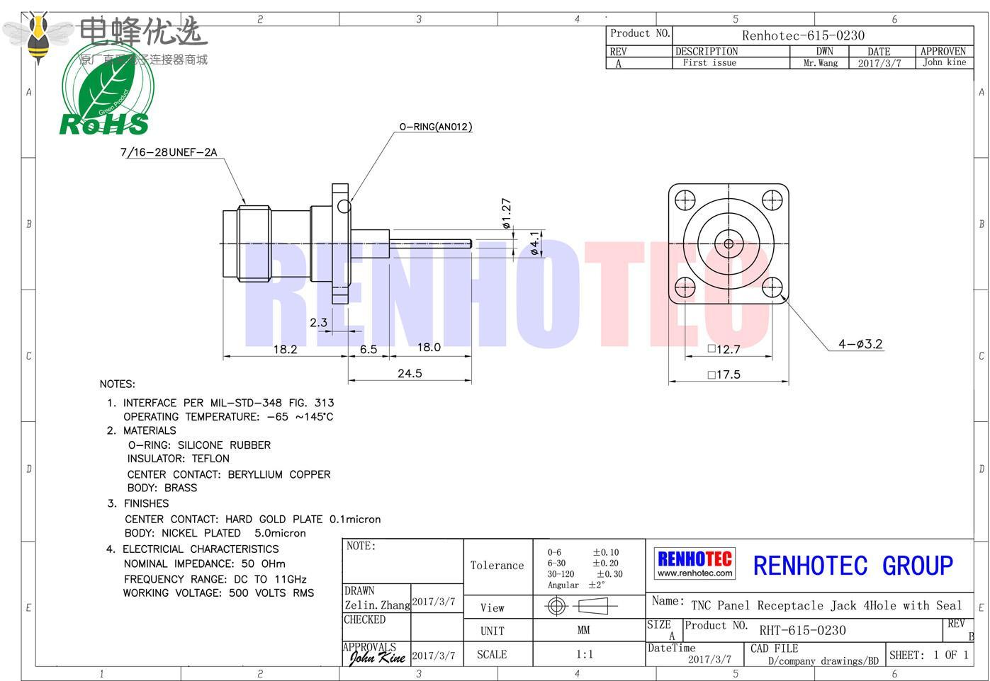 - 高质量原厂出货,30天无忧退换货,产品依照 MIL-C-39012国际标准生产;