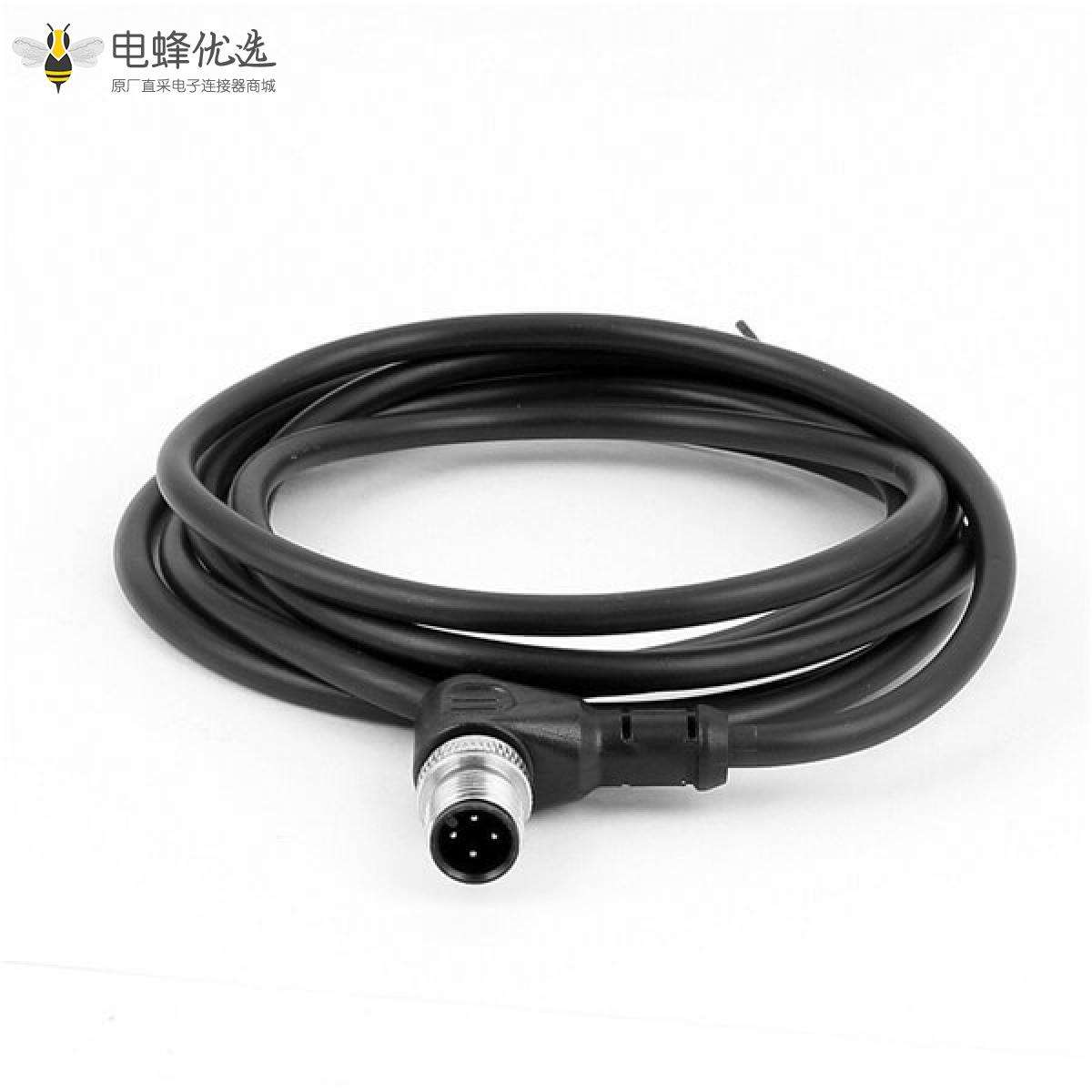 M12,A 编码,线束,4芯,公,弯的,焊线,单边,不带屏蔽;