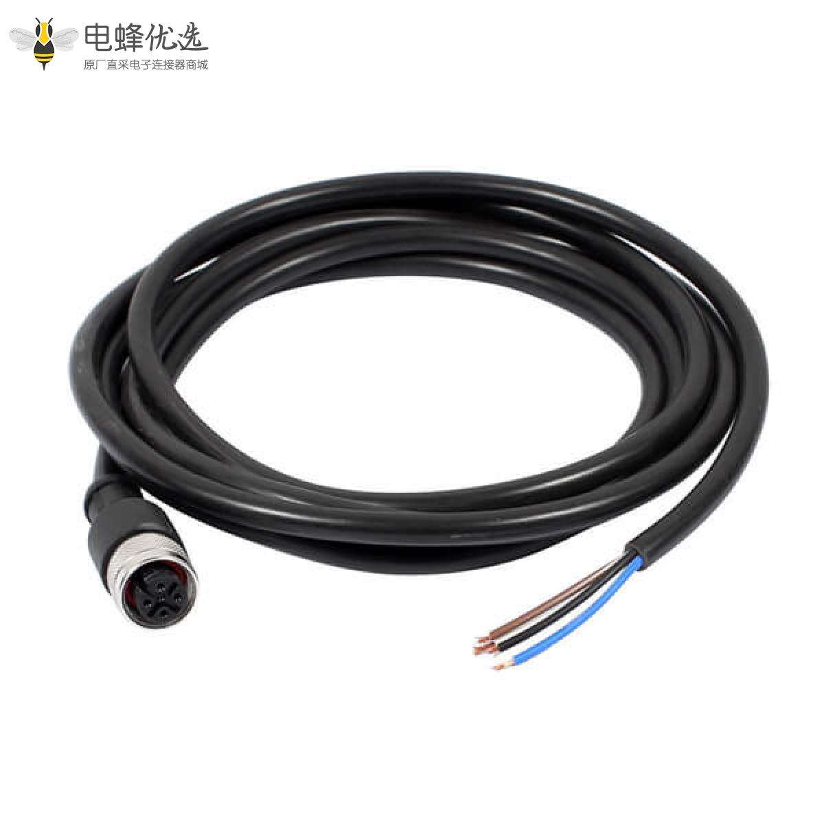 M12 4Pin连接器 A-code母头直头成型式带线1.5M型IP67防水连接器
