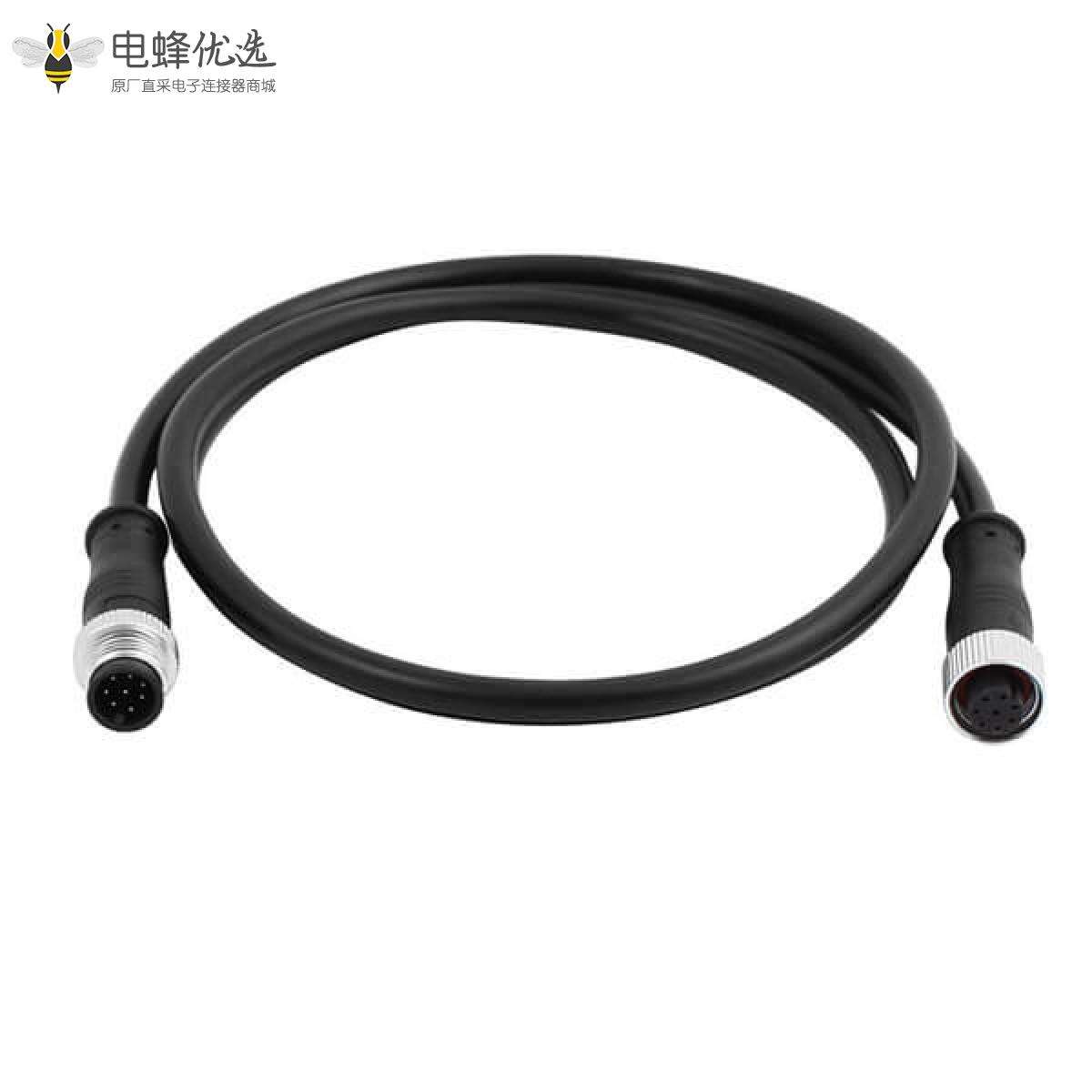 M12,A 编码,线束,8芯,公转母,弯的,焊线,双边,不带屏蔽;