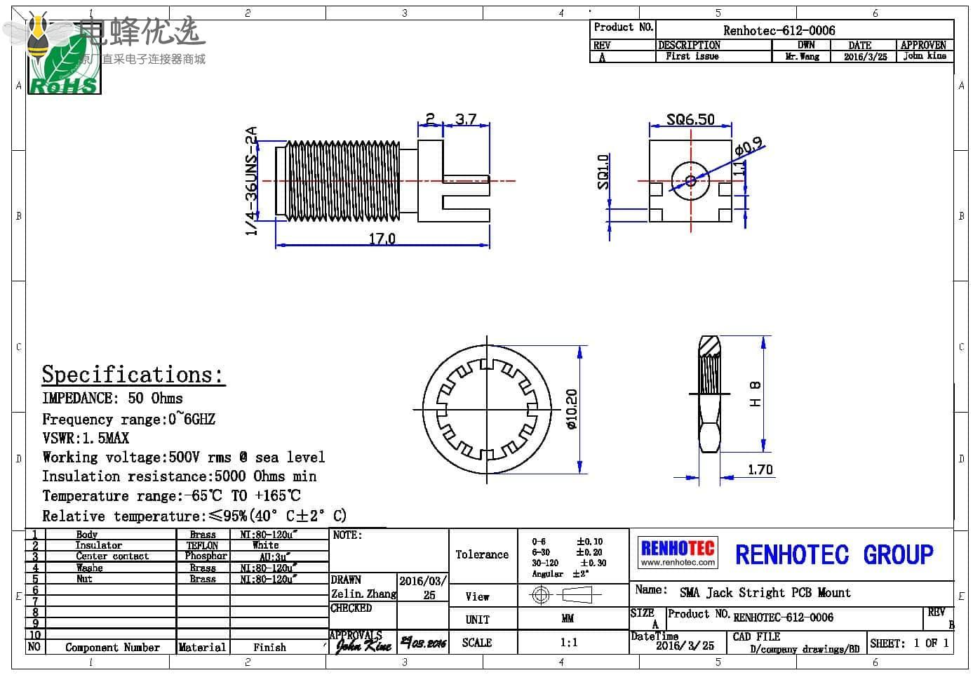 - sma连接器,pcb板,边缘卡板,母头,50欧,直式;