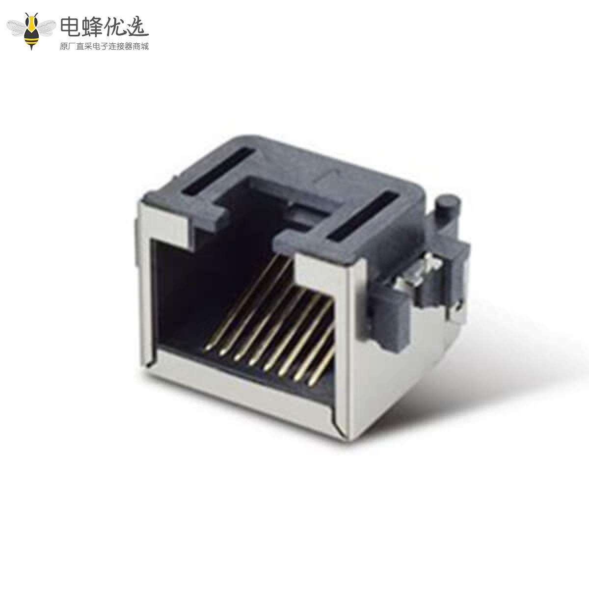 - RJ45连接器,母座,PCB板8P8C,1*1,单层,单口,沉板式,屏蔽,不带弹片,不带灯,不带滤波器,铜壳,镀镍;