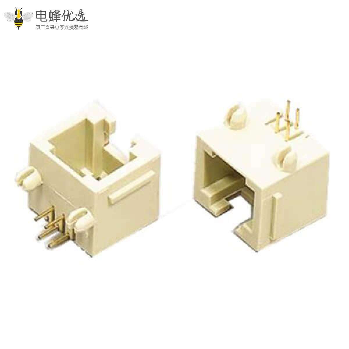- RJ45连接器,母座,PCB板6P,1*1,单层,单口,弯式,非屏蔽,不带弹片,不带灯,不带滤波器,全塑壳,白色;