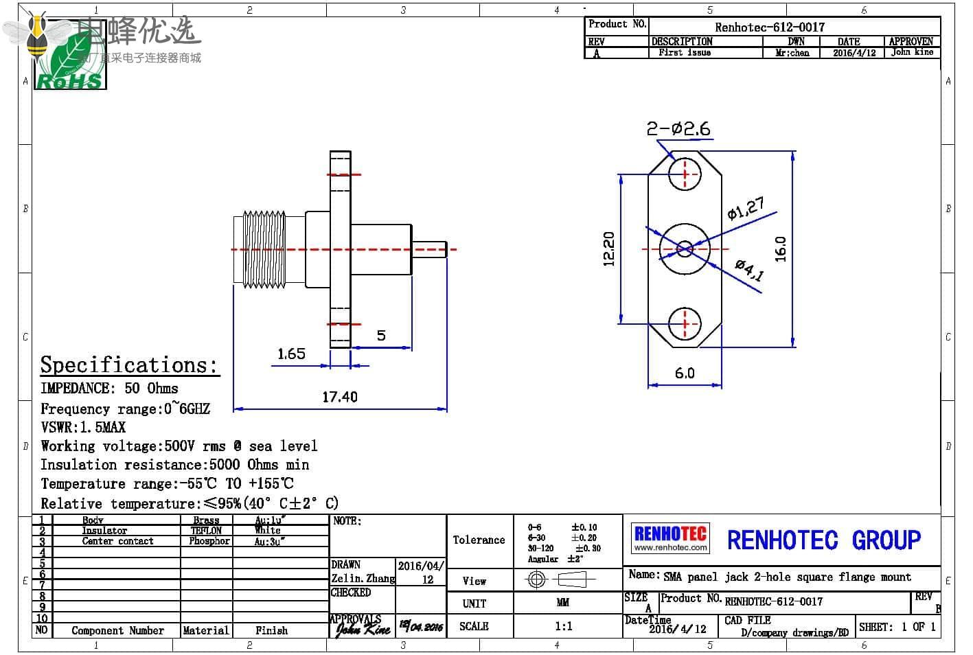 sma同轴连接器接头视频2孔法兰直式母头面板安装