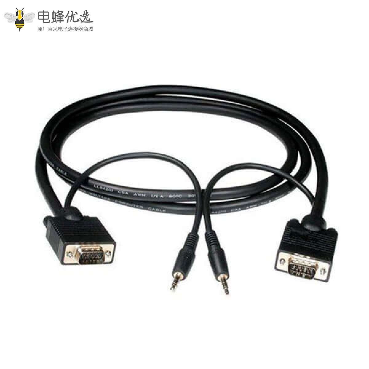 - VGA线,公头,HD15公头,3.5毫米立体声迷你插头,AWG 24/26电缆连接器;
