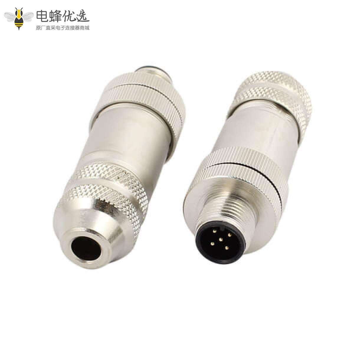 M12,A 编码,现场组装式,5芯,公,直式,螺丝锁线,带屏蔽;
