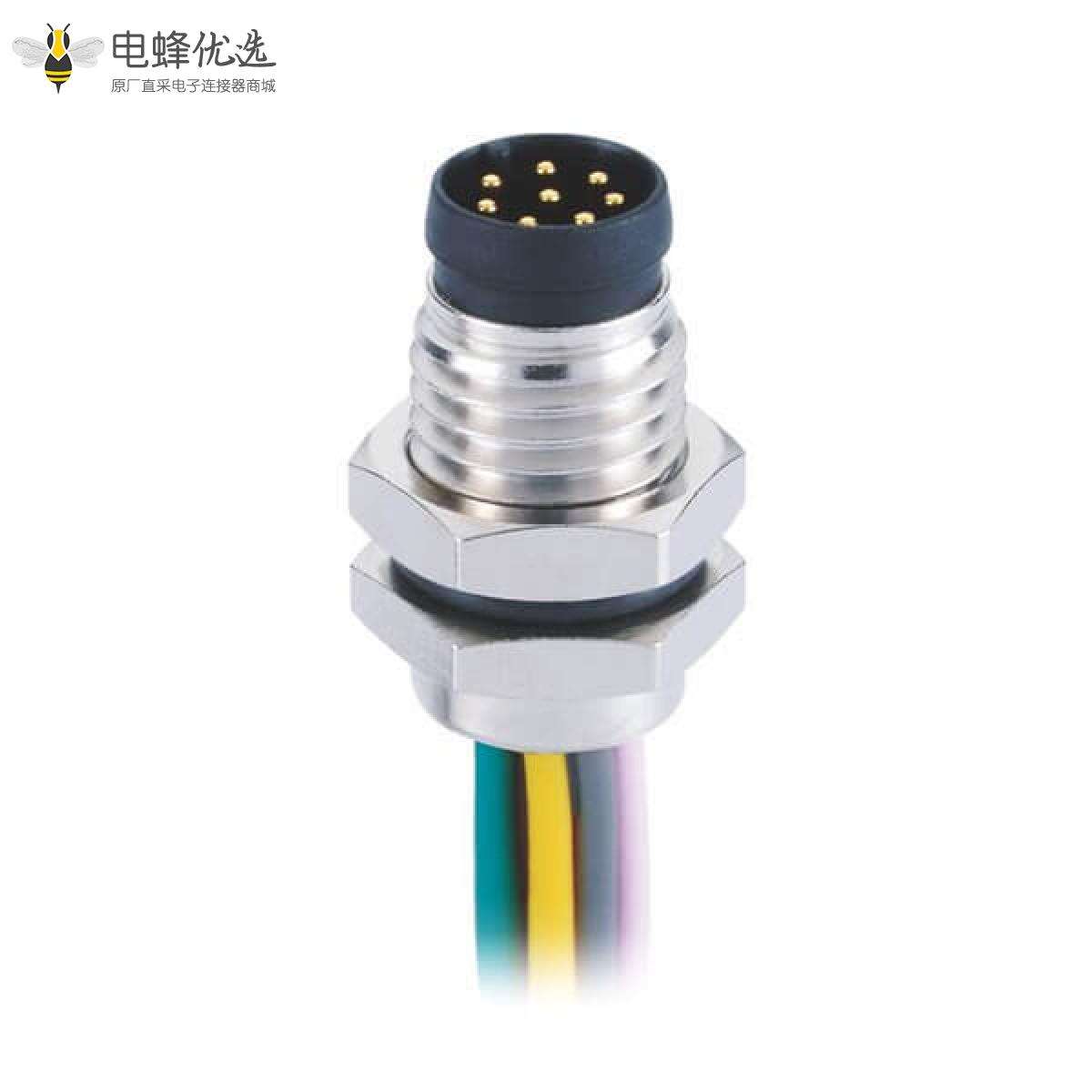 M8, A编码, 8芯,板端插座, 公, 直头, 线材, 焊接式, 前锁板;