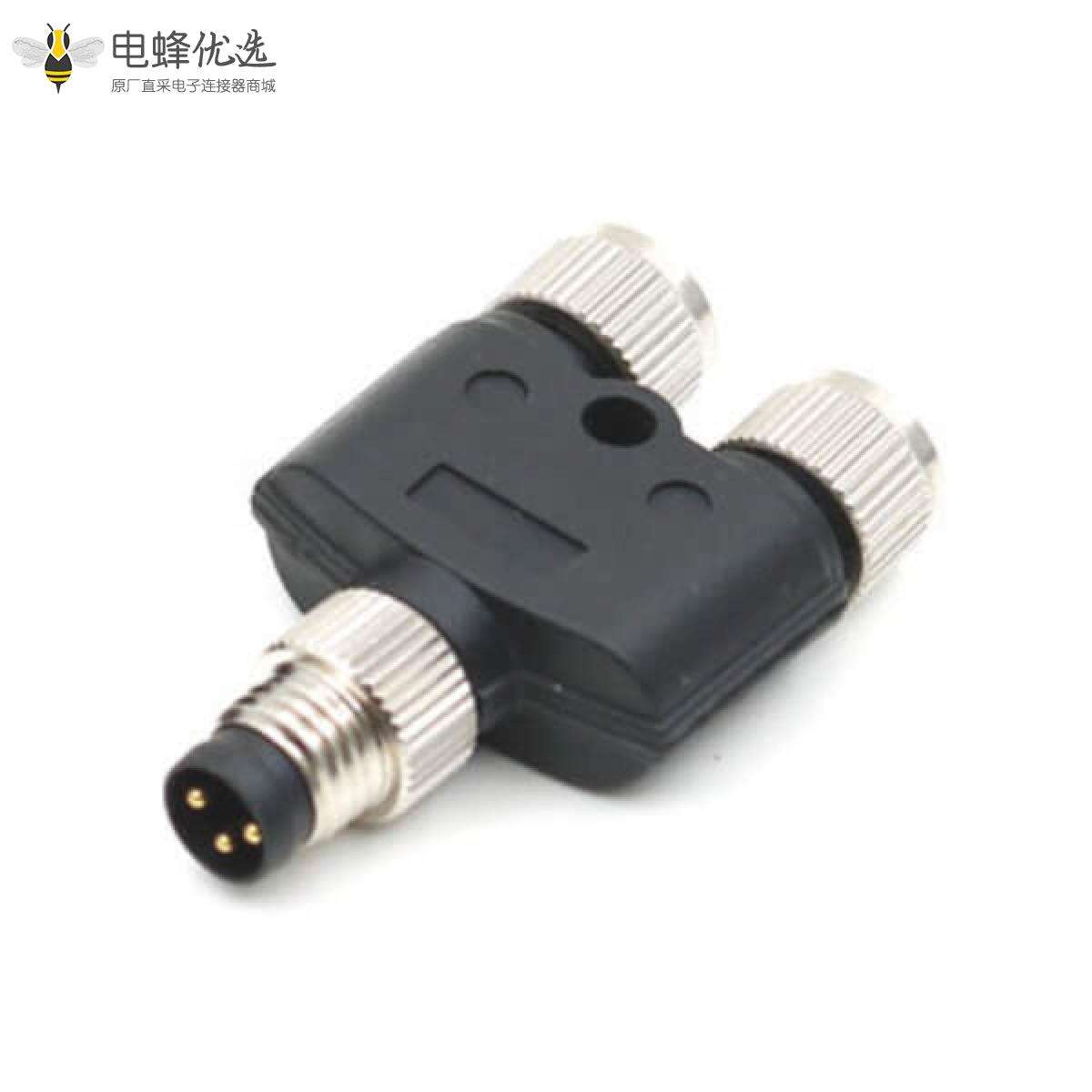 - M8, A编码, 3芯,转接头, 母转公, Y型;